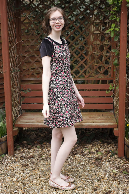 The fabric is a floral needlecord that I picked up when staying with Grandpa in Winchester before Christmas. It was really straight forward to work with as long as I made sure to cut all the pieces facing the same way. I still have 1/2 metre left from the 2 metres that I bought which I'll make into a button down skirt at some point.